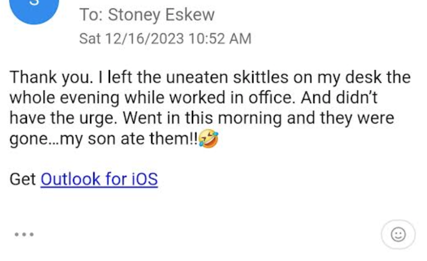 “The Crumbles cookies are still in the freezer- it’s been 2 months! The office has them regularly too and I’m not even thinking of them. Thank you!”